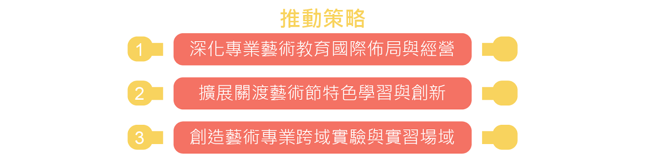 「創新・移動・藝術節」四年計畫,為維持本校於藝術高等教育之優勢,以藝術、文化開疆闢土,建立文化主體性與藝術典範。配合本校校務中長程發展計畫以「扎根在地讓世界看見臺灣」、「國際參與以深耕並多元開展在地文化」、成為「國際一流藝術大學」為願景,期望透過本計畫的執行,累積學校內部動能與強化創新擴散效果,以達到本校中長程校務發展計畫「藝術節品牌化」、「師資精進化」、「學習多元化」、「版圖國際化」及「資源活絡化」的學校特色發展,促進藝術群聚與在地交流,以展演驅動教學與學習,樹立一流藝術教學的在地典範,培養人才。除了透過參與國際藝術組織,提升臺灣藝術國際能見度與地位,也藉由政府各項委託或補助計畫的實施,扮演臺灣藝術教育的領導者,升級臺灣全民美學教育。