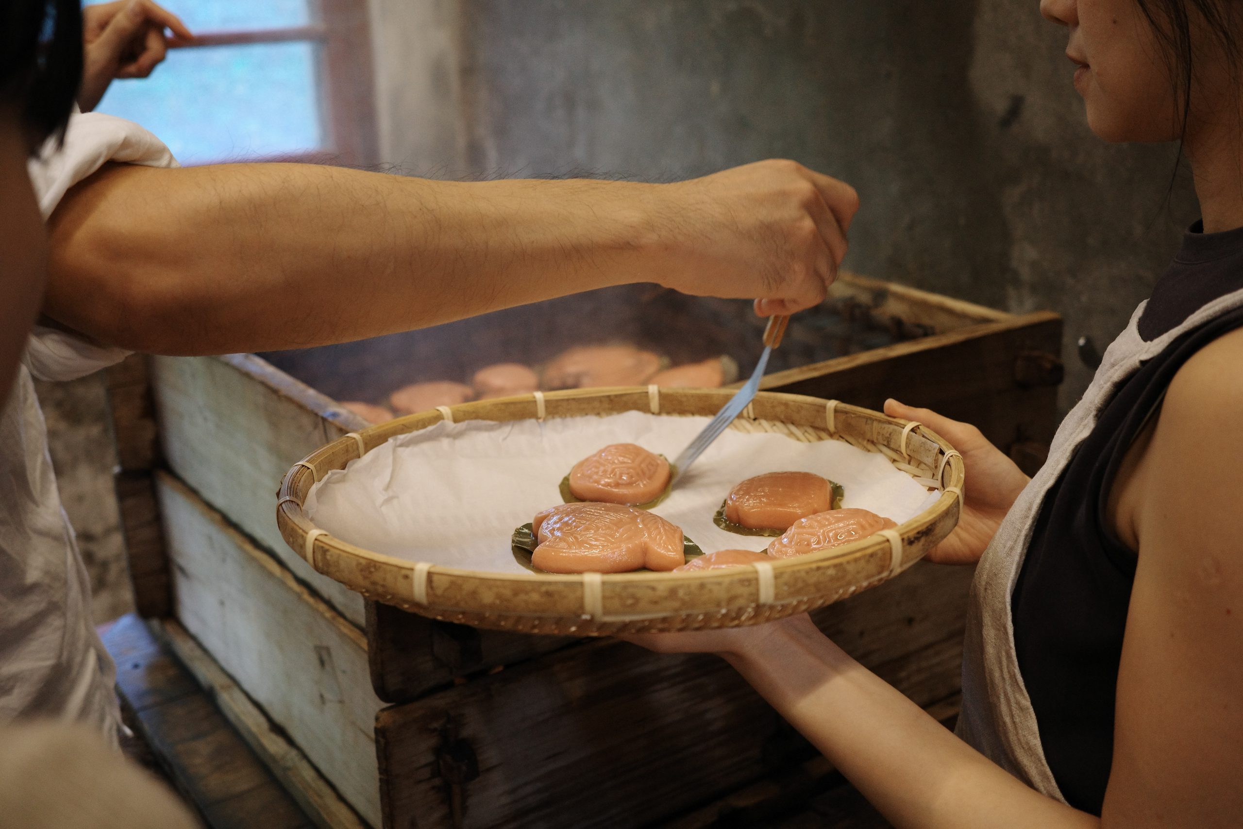 在等待粿蒸熟的過程中,黃老師向我們分享他們的起點,他也同樣問在坐的我們:如果有外國人問我們台灣的在地美食,你們會回答什麼?你們回答的答案你自己會做嗎?對我來說這個問題其實更深一層就是問:這跟你生活的關係是什麼?同樣地,當黃老師分享他們找到這間三合院,租借下來後,那些修復一磚一瓦都已經必須請年邁的老師傅,因為「現在」已經沒有年輕人住這樣的房子時,我感受到的訊息是: